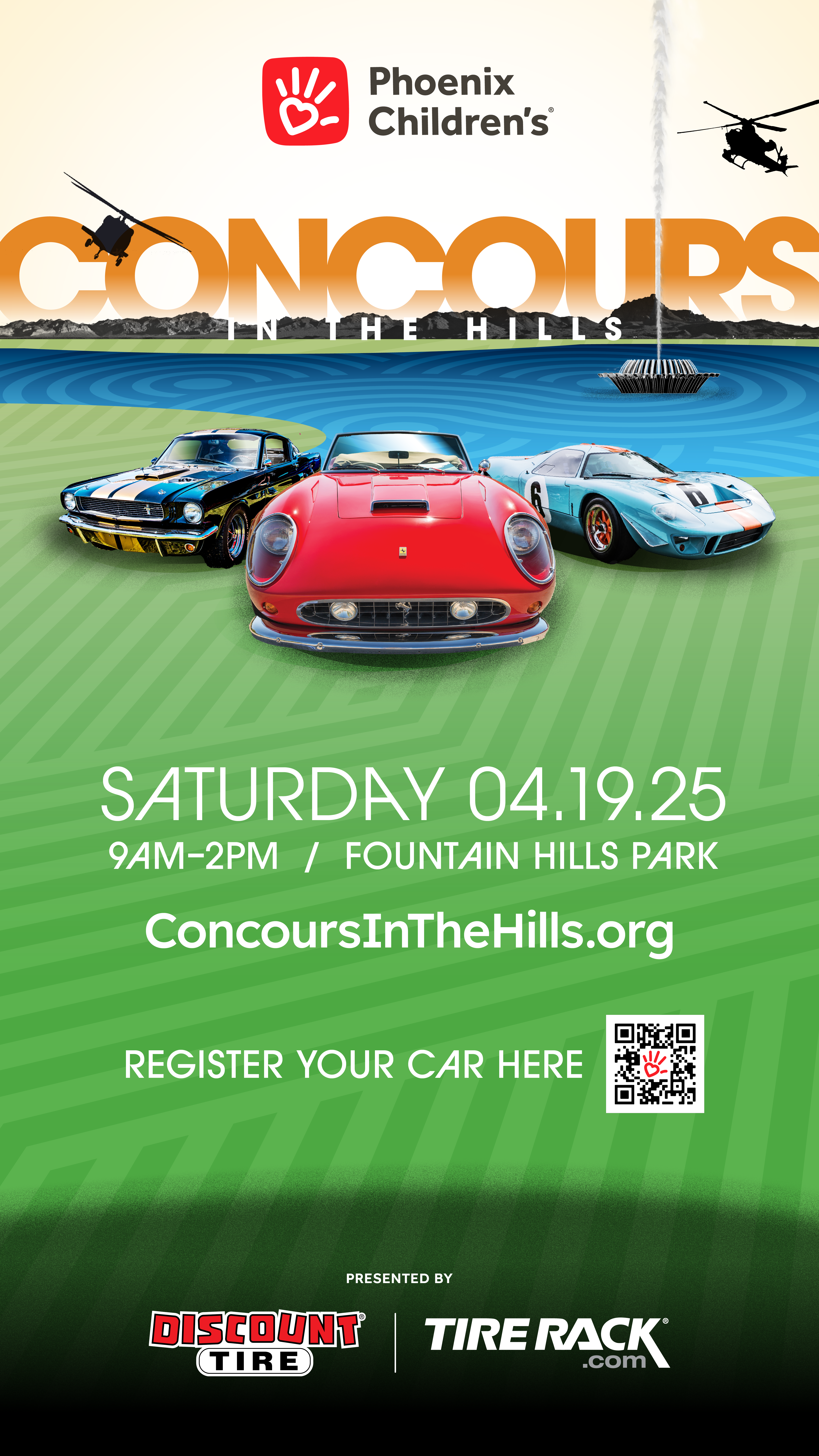 Mark your calendars for April 19, 2025, and get ready for the 11th annual Concours in the Hills event! Join ‘The Greatest Car Show on Grass’ for a day of stunning vehicles, great food, and music in the spectacular setting of Fountain Park. Attendance is free, but donations are welcome. Funds raised during Concours in the Hills finance innovative research, cutting-edge technology, recruitment of leading physicians, and child-friendly programs that make the hospital environment more comfortable for young patients. Attendees will enjoy a massive display of vehicles, showcasing everything from contemporary and classic race cars to exotic high-performance cars, muscle cars, sports cars, hot rods, military vehicles, helicopters, and motorcycles.