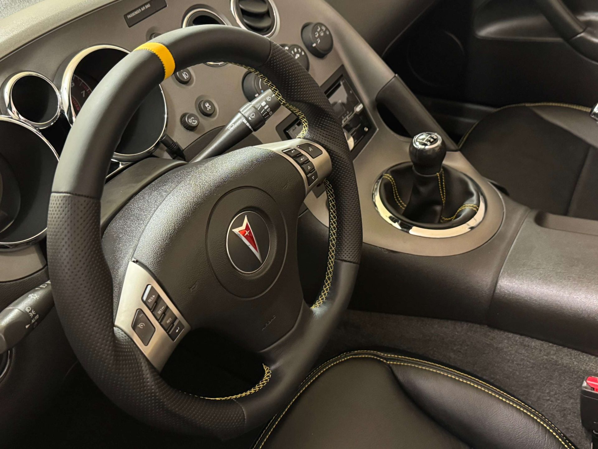 With its one-off, custom widebody rear, this manual transmission Solstice is one of the finest examples we have ever taken into our program. The wider rear fenders allow for 19×12 inch rear wheels with 325-30/19 tires and provide a truly aggressive stance. This car has a full compliment of upgrades including an RPM-Motorsports Stage 3 engine package, upgraded radiator, custom intake, intercooler, suspension and exhaust. Inside it features a Katzkin/Seatz, Etc. leather interior and an ultra-high end stereo/AV system from inMobile/Soundwerks, Morel Audio, JL Audio and Sony. With less than 30,000 miles on the odometer, this yellow beauty is a solid driver and draws attention everywhere it goes.