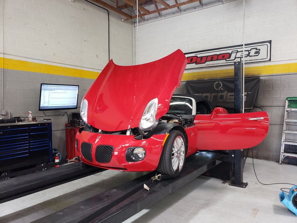 This red Solstice featured a Stage 3 engine package, custom exhaust, custom suspension, custom wheels and tires and a custom interior with upgraded sound system.
