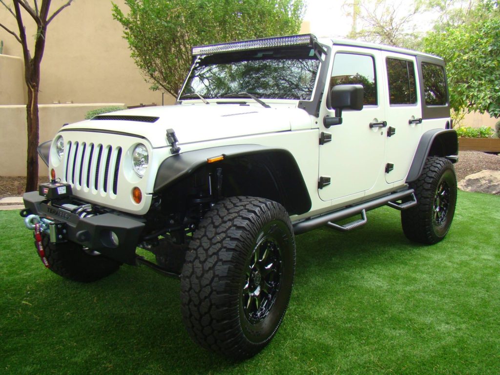 This Jeep was highly supported by the off-road community and included a lift kit, wheels, tires, white wrap, custom interior, custom sound system and winch and more.